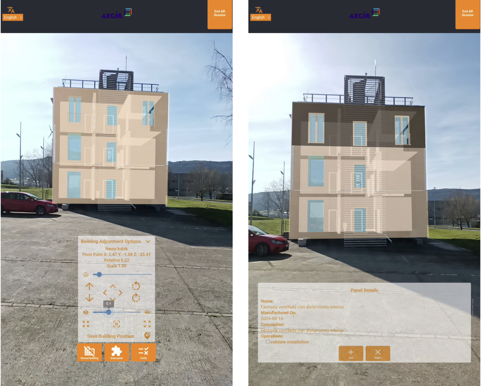 The AR tool bridges the gap between digital information and the real-world environment, allowing users to visualise information about the components to be installed in the actual location. Additionally, the tool has the option to display further information (such as safety instructions or installation details) related to each panel, ensuring that workers have all necessary information on-site.
