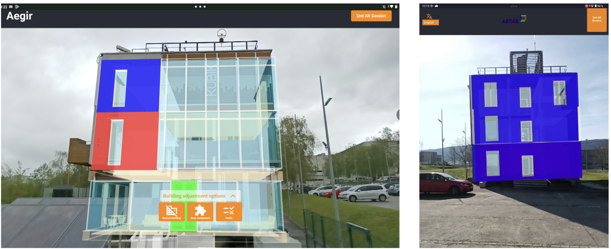 As part of the AEGIR project, aimed at upgrading older, non-renovated buildings by retrofitting their envelopes to meet the European climate targets required by 2050, an Augmented Reality (AR) tool was developed. The article presents findings from utilizing a low-cost AR tool used to facilitate the renovation and maintenance process of buildings. This tool is specifically useful in the application of AEGIR’s plug-and-play methodology in building renovation, where panels are assembled like a large puzzle.